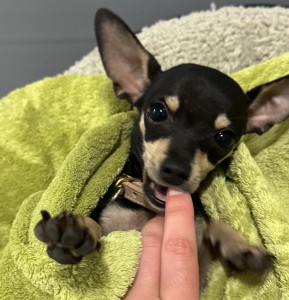 Der winzige Pixel, vermutlich ein Mischling aus Prager Rattler und Chihuahua, wurde in Detmold gefunden - allein und im Stich gelassen.