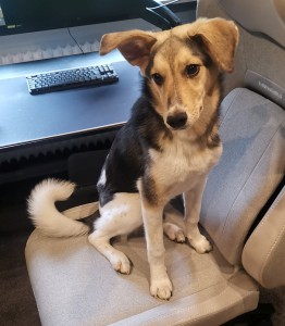 Er hat sich innerhalb der ersten 24 Stunden super eingelebt bei uns. Bis jetzt ist er super unkompliziert und lernt schnell. Vom ersten Tag an war das widerwillige Spazierengehen Geschichte. Stubenrein war er auch von selbst, bis auf ein Malheur in der ersten Nacht. Die erste Party bei uns mit vielen Leuten hat er auch super überstanden, mitten in der Tür zu schlafen, so dass alle über ihn steigen müssen, fand er besonders toll. Andere Tiere, Kinder, Treppen, Autofahren... Alles kein Problem.