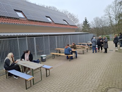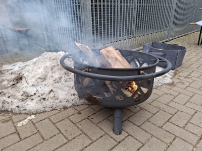 Nach dem Stöbern im mit schönen und nützlichen Sachen gut gefüllten Verkaufsraum reihten sich unsere Besucherinnen und Besucher um die Brennschale und konnten sich am Feuer und mit heißen Getränken und wunderbarem Kuchen aufwärmen.