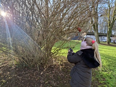 Natürlich durften die Kinder ihre selbstgemachten Futter-Bars mit nach Hause nehmen. Drei Futterstationen haben wir, geschützt vor unseren Hofkatzen, in einen der Büsche auf dem Tierheim-Gelände aufgehängt. Zu unserer großen Freude wurden sie sofort von den Vögeln angenommen.