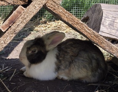 Dann haben wir noch zwei kleine Hasen, die fünf Monate alt sind und auch nicht kastriert.